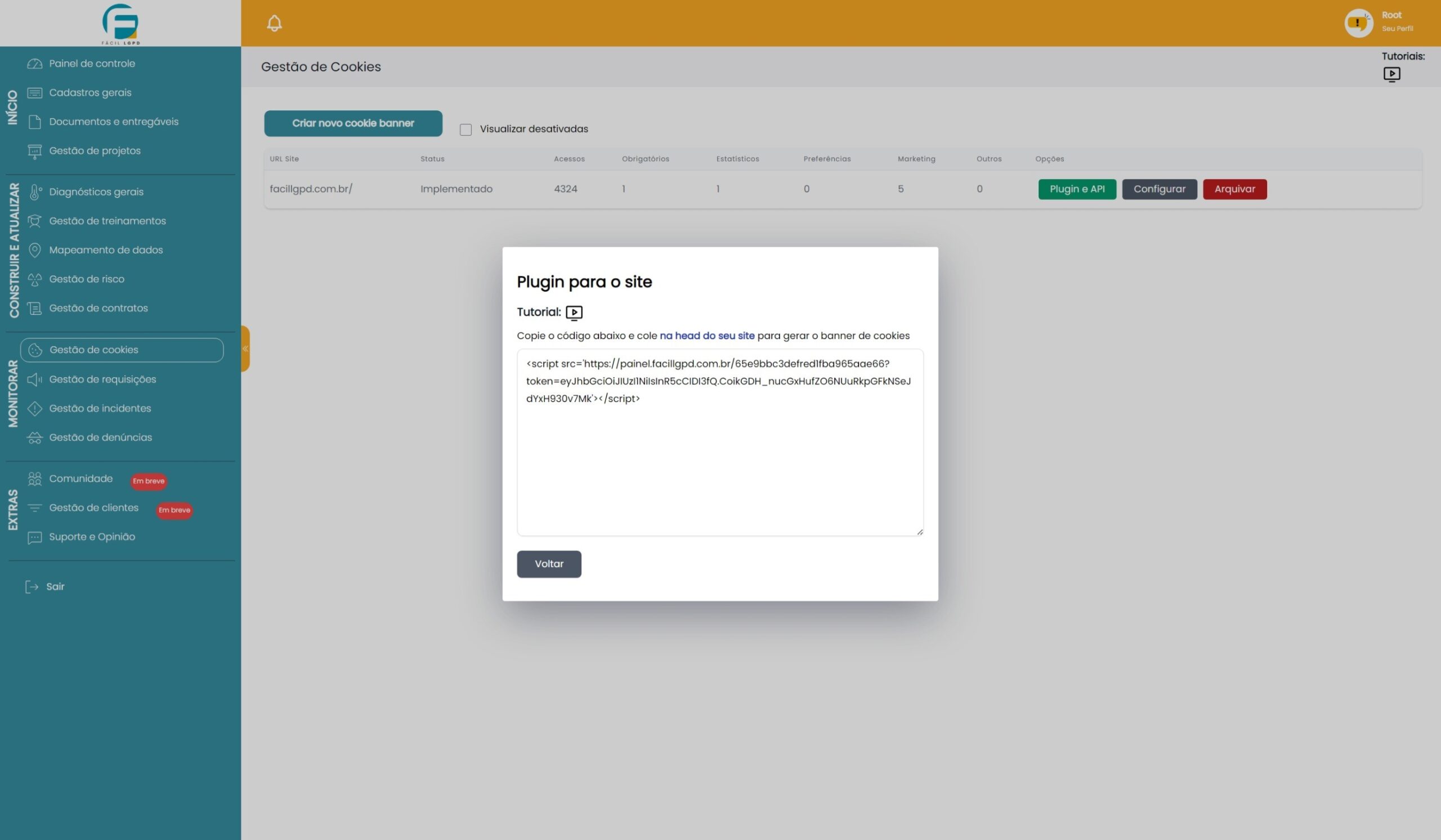 - Integração Simples: Adicione nosso código ao seu site e comece a coletar consentimentos imediatamente.